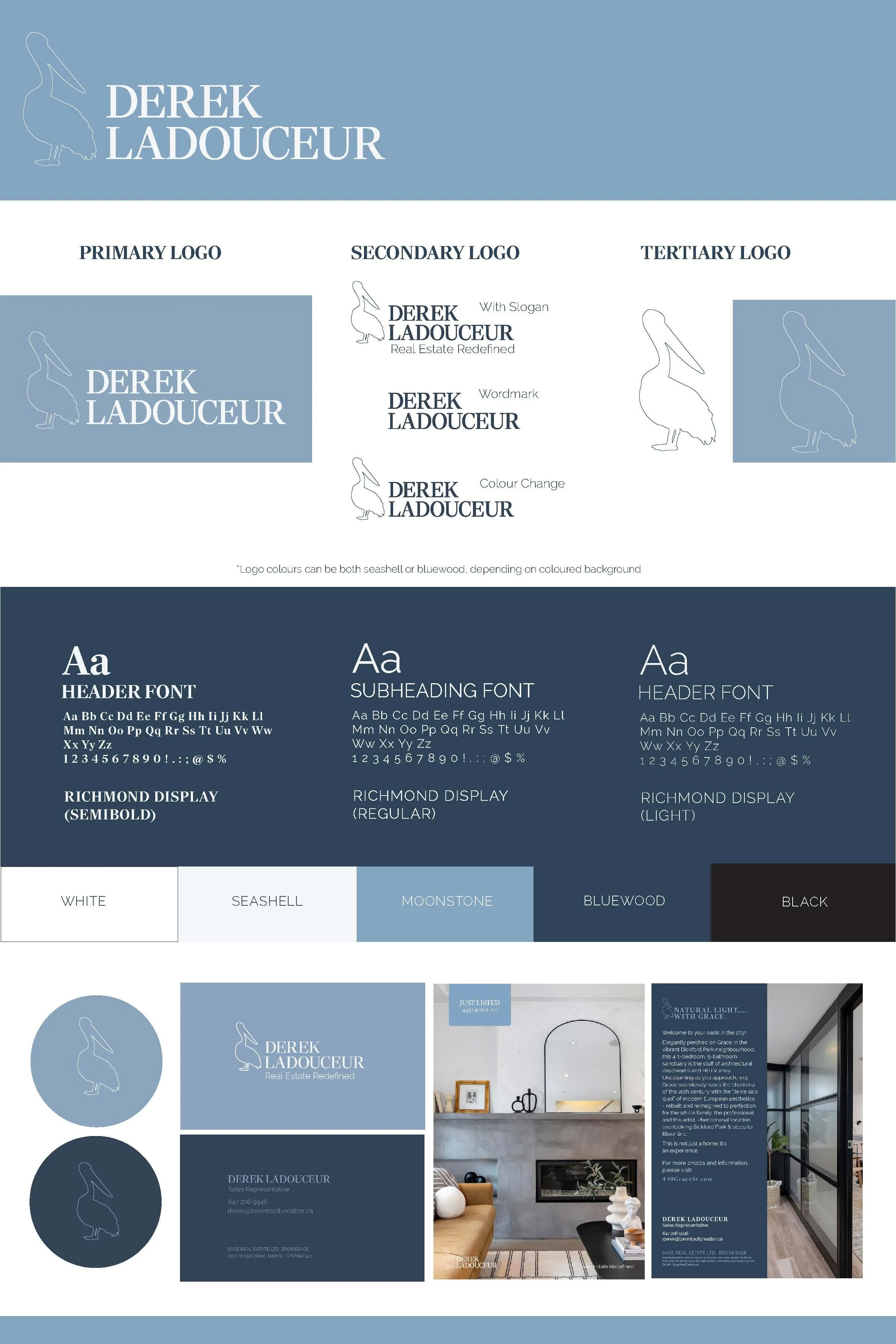Design Process: Review client identity questionnaire > analyze current brand > create moodboard > begin logo modification ideation > condense logo selection > create colour palette > begin design concepts.